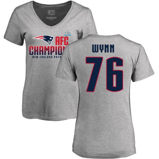 Women's Nike New England Patriots #76 Isaiah Wynn Heather Gray 2017 AFC Champions V-Neck T-Shirt