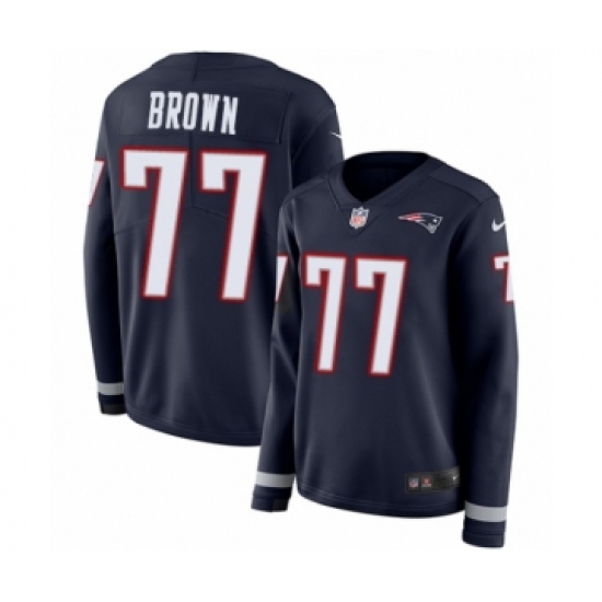 Women's Nike New England Patriots #77 Trent Brown Limited Navy Blue Therma Long Sleeve NFL Jersey