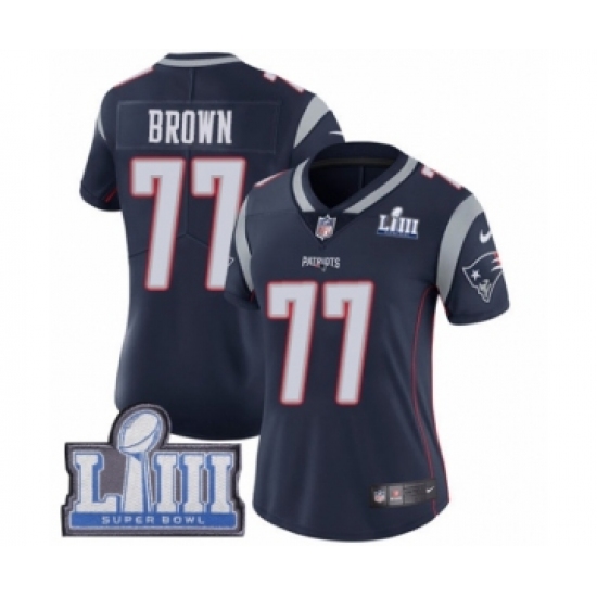 Women's Nike New England Patriots #77 Trent Brown Navy Blue Team Color Vapor Untouchable Limited Player Super Bowl LIII Bound NFL Jersey