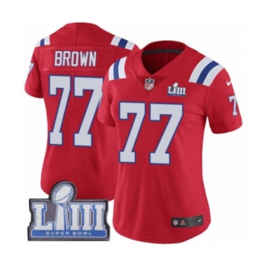 Women's Nike New England Patriots #77 Trent Brown Red Alternate Vapor Untouchable Limited Player Super Bowl LIII Bound NFL Jersey