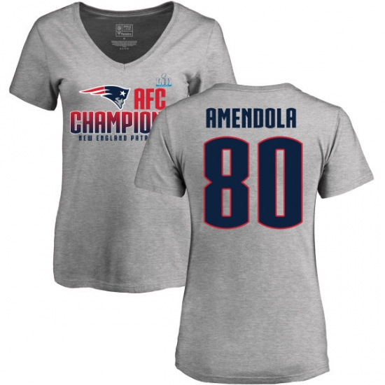 Women's Nike New England Patriots #80 Danny Amendola Heather Gray 2017 AFC Champions V-Neck T-Shirt