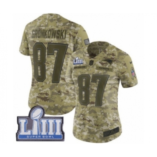 Women's Nike New England Patriots #87 Rob Gronkowski Limited Camo 2018 Salute to Service Super Bowl LIII Bound NFL Jersey