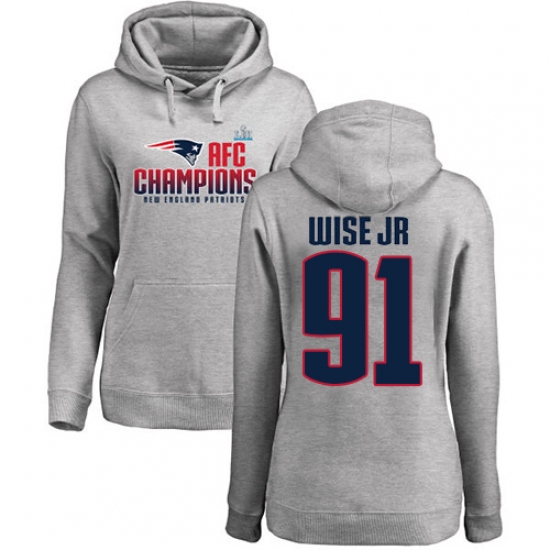 Women's Nike New England Patriots #91 Deatrich Wise Jr Heather Gray 2017 AFC Champions Pullover Hoodie