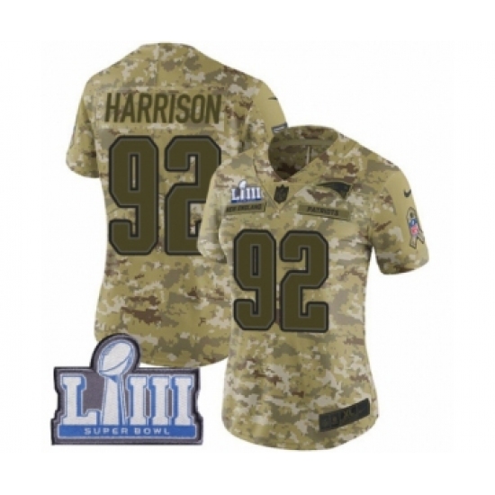 Women's Nike New England Patriots #92 James Harrison Limited Camo 2018 Salute to Service Super Bowl LIII Bound NFL Jersey