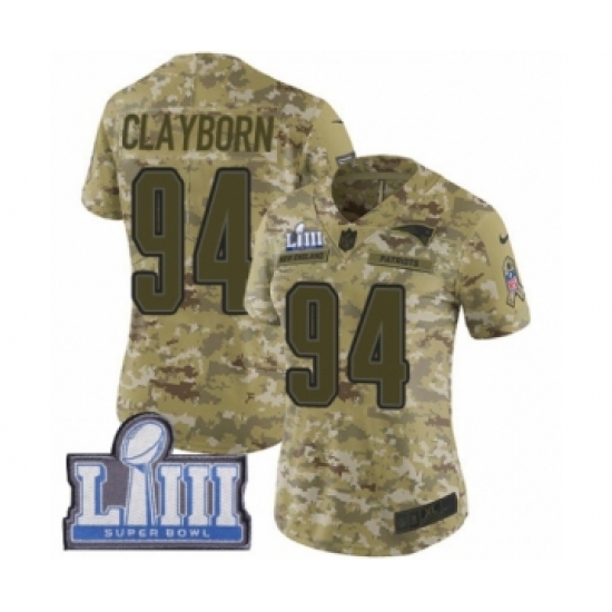 Women's Nike New England Patriots #94 Adrian Clayborn Limited Camo 2018 Salute to Service Super Bowl LIII Bound NFL Jersey
