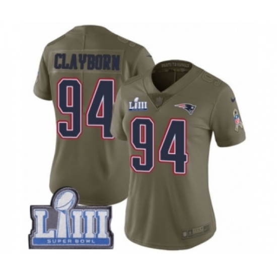 Women's Nike New England Patriots #94 Adrian Clayborn Limited Olive 2017 Salute to Service Super Bowl LIII Bound NFL Jersey