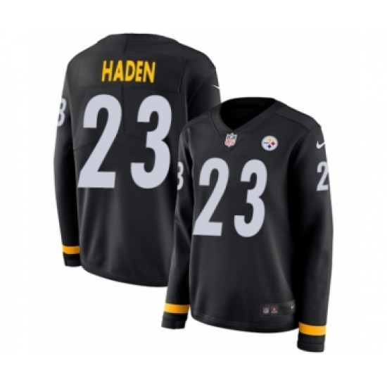 Women's Nike Pittsburgh Steelers #23 Joe Haden Limited Black Therma Long Sleeve NFL Jersey
