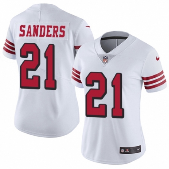 Women's Nike San Francisco 49ers #21 Deion Sanders Limited White Rush Vapor Untouchable NFL Jersey