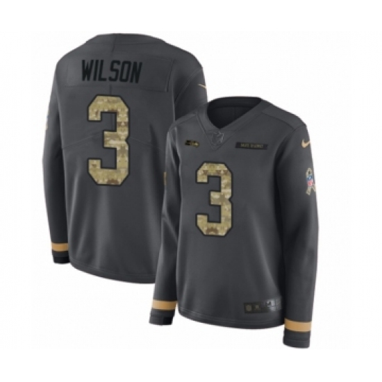 Women's Nike Seattle Seahawks #3 Russell Wilson Limited Black Salute to Service Therma Long Sleeve NFL Jersey