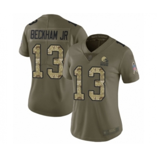 >Women's Odell Beckham Jr. Limited Olive Camo Nike Jersey NFL Cleveland Browns #13 2017 Salute to Service
