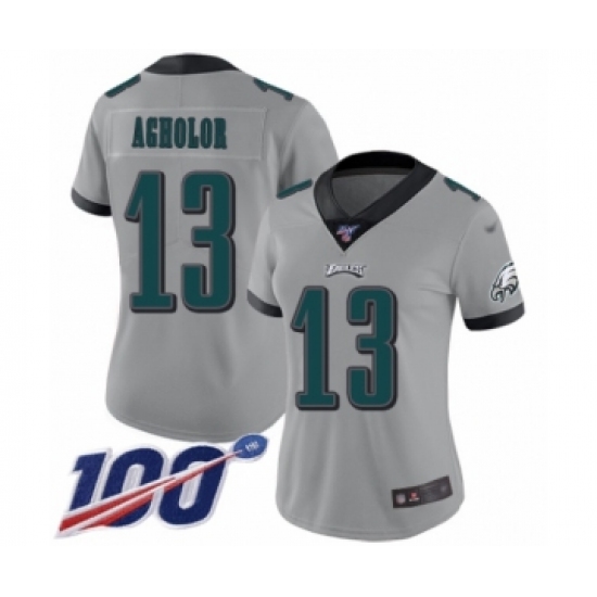 >Women's Philadelphia Eagles #13 Nelson Agholor Limited Silver Inverted Legend 100th Season Football Jersey