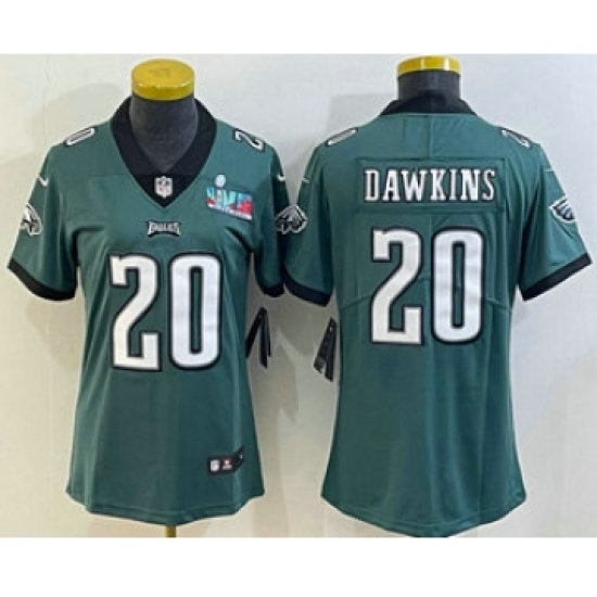 >Women's Philadelphia Eagles #20 Brian Dawkins Limited Green Super Bowl LVII Vapor Jersey