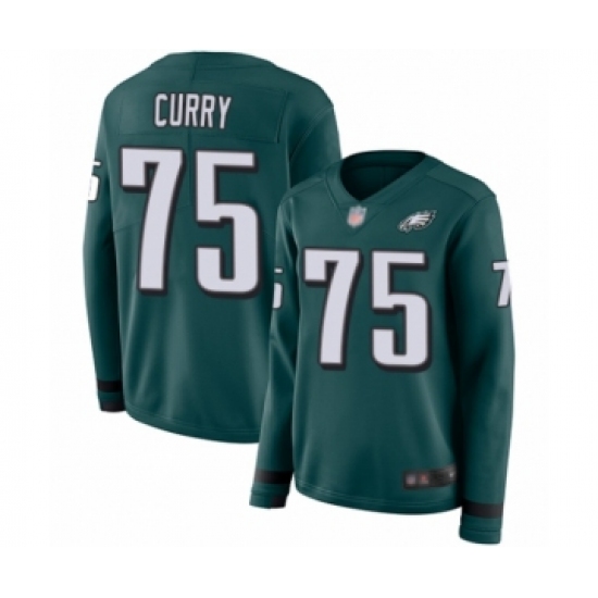 >Women's Philadelphia Eagles #75 Vinny Curry Limited Green Therma Long Sleeve Football Jersey