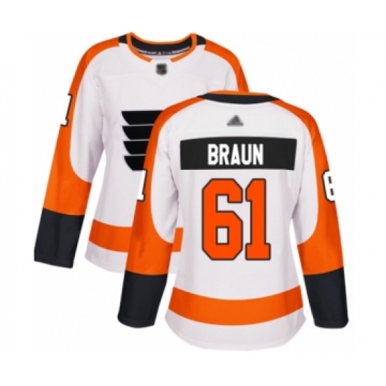 Women's Philadelphia Flyers #61 Justin Braun Authentic White Away Hockey Jersey