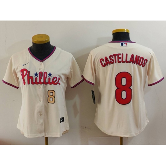 Women's Philadelphia Phillies #8 Nick Castellanos Cream Cool Base Jerseys