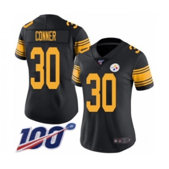 >Women's Pittsburgh Steelers #30 James Conner Limited Black Rush Vapor Untouchable 100th Season Football Jersey