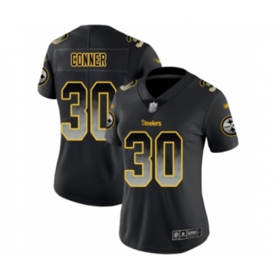 >Women's Pittsburgh Steelers #30 James Conner Limited Black Smoke Fashion Football Jersey
