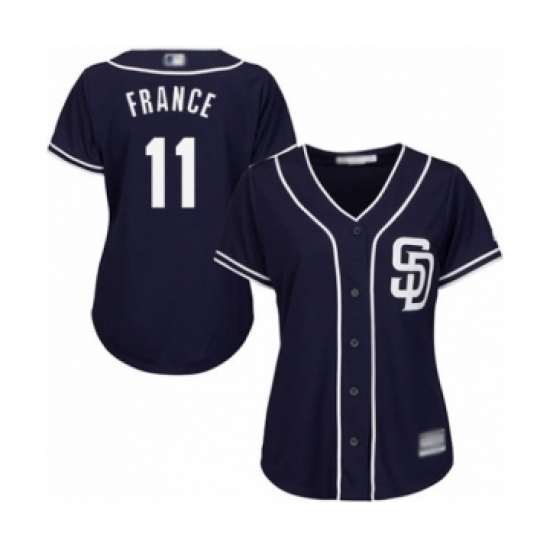 >Women's San Diego Padres #11 Ty France Authentic Navy Blue Alternate 1 Cool Base Baseball Player Jersey