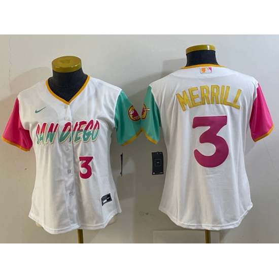 Women's San Diego Padres #3 Jackson Merrill Number White 2024 City Connect Cool Base Stitched Jersey