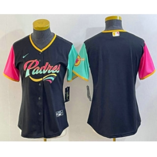 >Women's San Diego Padres Blank Black 2022 City Connect Cool Base Stitched Jersey