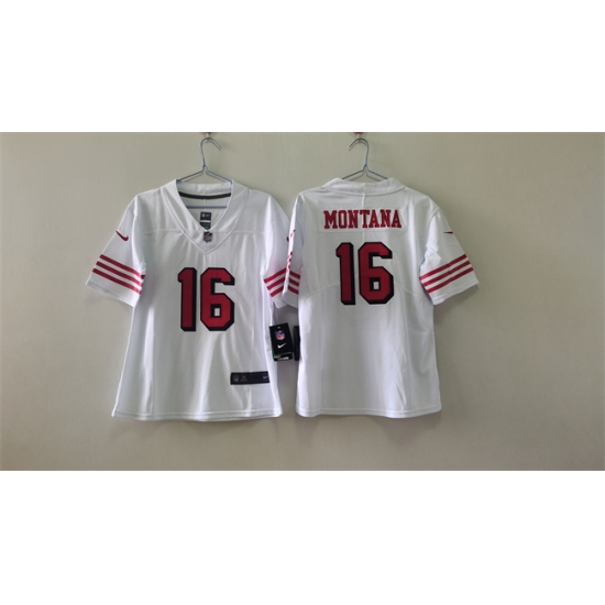 Women's San Francisco 49ers #16 Joe Montana White 2nd Alternate Football Stitched Jersey(Run Small)