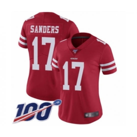 >Women's San Francisco 49ers #17 Emmanuel Sanders Red Team Color Vapor Untouchable Limited Player 100th Season Football Jersey