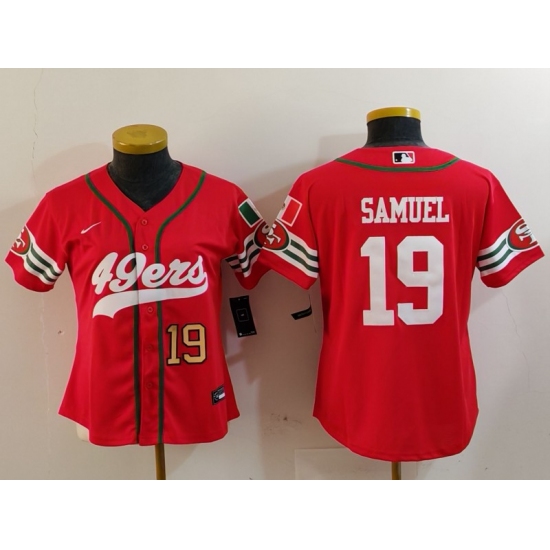 >Women's San Francisco 49ers #19 Deebo Samuel Red Mexico Cool Base Stitched Baseball Jerseys