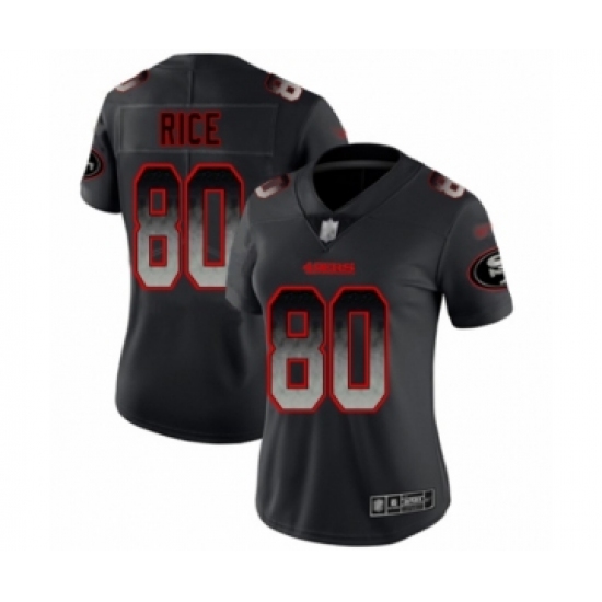 Women's San Francisco 49ers #80 Jerry Rice Limited Black Smoke Fashion Football Jersey
