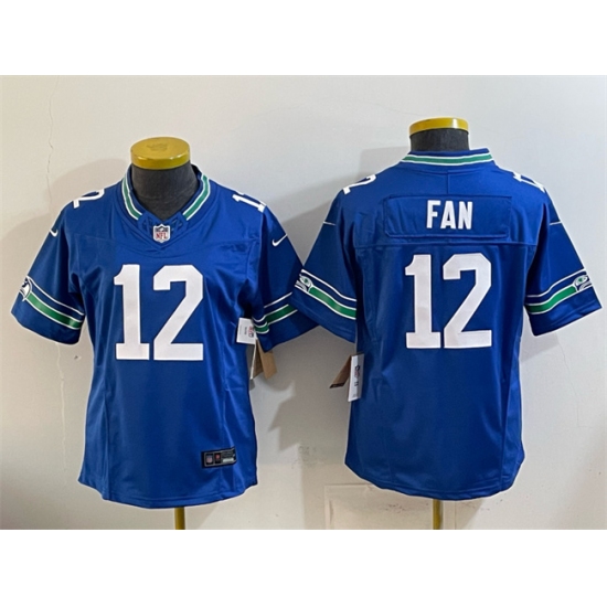 Women's Seattle Seahawks #12 Fan Royal 2024 F.U.S.E Throwback Vapor Limited Stitched Football Jersey(Run Small)