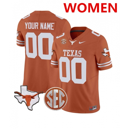 Women's Texas Longhorns Active Player Custom Orange F.U.S.E. State Map & SEC Patch Stitched Jersey