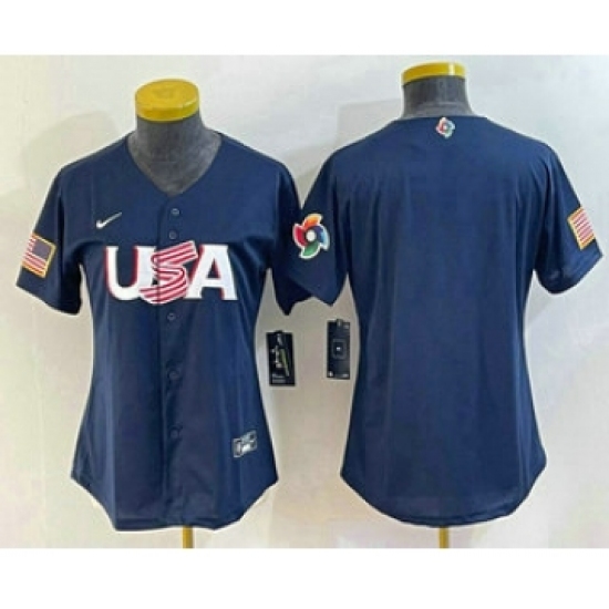 Women's USA Baseball Blank 2023 Navy World Classic Stitched Jersey