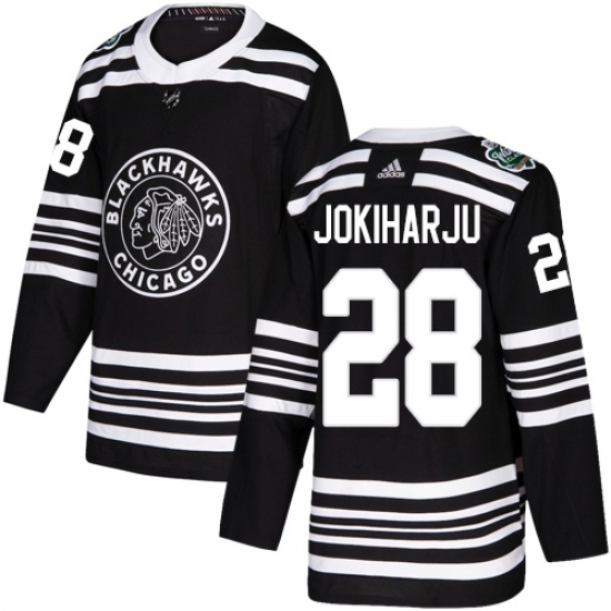>Youth Adidas Chicago Blackhawks #28 Henri Jokiharju Authentic Black 2019 Winter Classic NHL Jersey