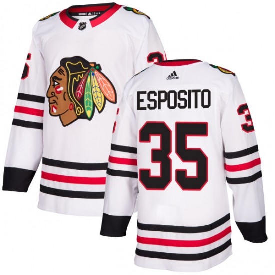 Home>NHL>Chicago Blackhawks>Tony Esposito>Youth Adidas Chicago Blackhawks #35 Tony Esposito Authentic White Away NHL Jersey