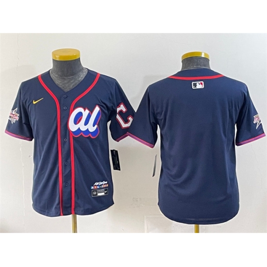 >Youth American League Cleveland Guardians Blank Navy 2025 All-Star Edition Limited Stitched Baseball Jersey