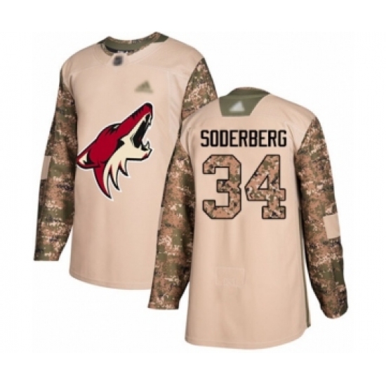 Men's Arizona Coyotes #34 Carl Soderberg Authentic Camo Veterans Day Practice Hockey Jersey