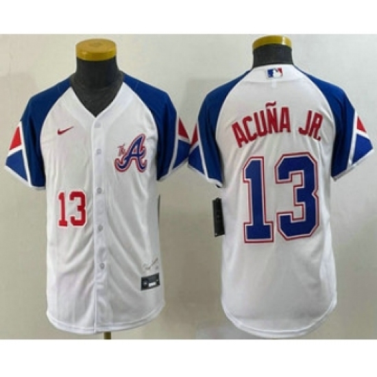 Youth Atlanta Braves #13 Ronald Acuna Jr Number White 2023 City Connect Cool Base Stitched Jersey1