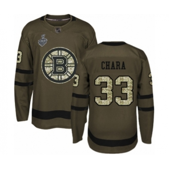 >Youth Boston Bruins #33 Zdeno Chara Authentic Green Salute to Service 2019 Stanley Cup Final Bound Hockey Jersey