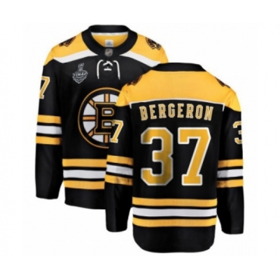 >Youth Boston Bruins #37 Patrice Bergeron Authentic Black Home Fanatics Branded Breakaway 2019 Stanley Cup Final Bound Hockey Jersey