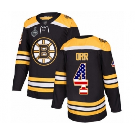 Youth Boston Bruins #4 Bobby Orr Authentic Black USA Flag Fashion 2019 Stanley Cup Final Bound Hockey Jersey