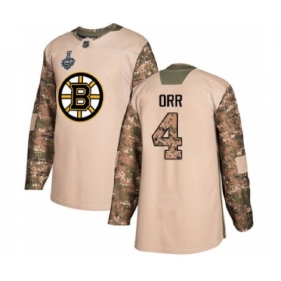 Youth Boston Bruins #4 Bobby Orr Authentic Camo Veterans Day Practice 2019 Stanley Cup Final Bound Hockey Jersey