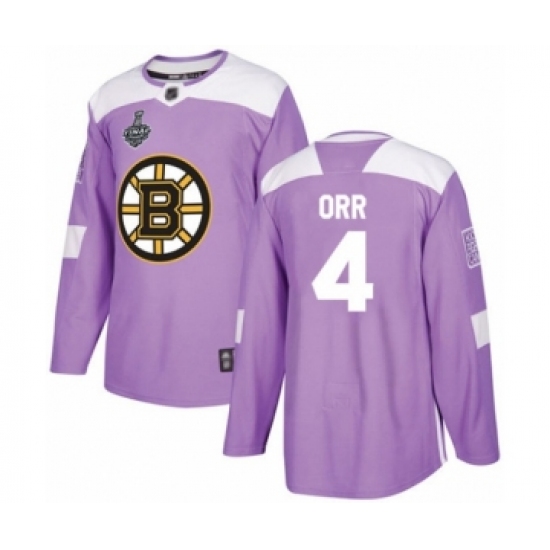 Men's Boston Bruins #4 Bobby Orr Authentic Purple Fights Cancer Practice 2019 Stanley Cup Final Bound Hockey Jersey