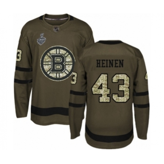 >Youth Boston Bruins #43 Danton Heinen Authentic Green Salute to Service 2019 Stanley Cup Final Bound Hockey Jersey