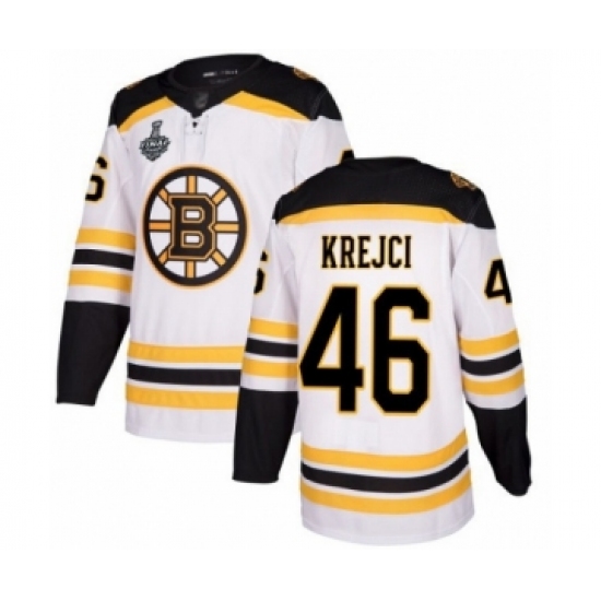 Youth Boston Bruins #46 David Krejci Authentic White Away 2019 Stanley Cup Final Bound Hockey Jersey