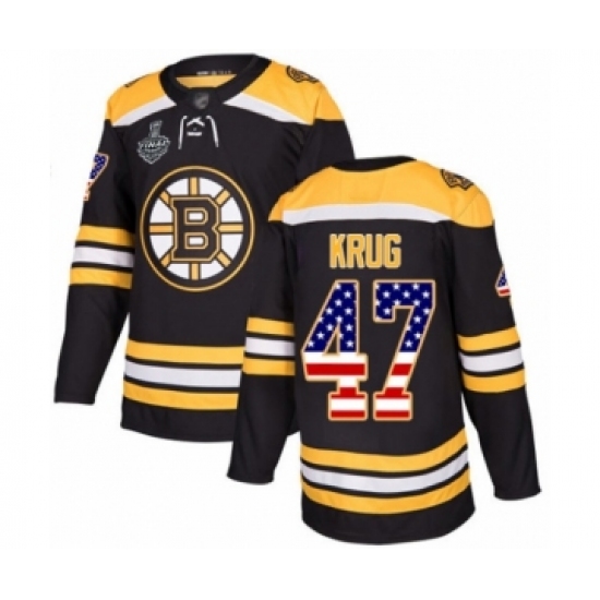 Youth Boston Bruins #47 Torey Krug Authentic Black USA Flag Fashion 2019 Stanley Cup Final Bound Hockey Jersey