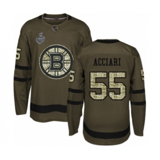 >Youth Boston Bruins #55 Noel Acciari Authentic Green Salute to Service 2019 Stanley Cup Final Bound Hockey Jersey