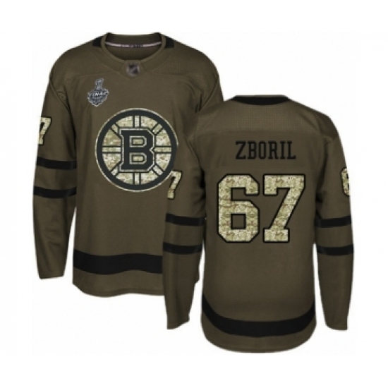 >Youth Boston Bruins #67 Jakub Zboril Authentic Green Salute to Service 2019 Stanley Cup Final Bound Hockey Jersey