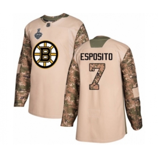 Youth Boston Bruins #7 Phil Esposito Authentic Camo Veterans Day Practice 2019 Stanley Cup Final Bound Hockey Jersey