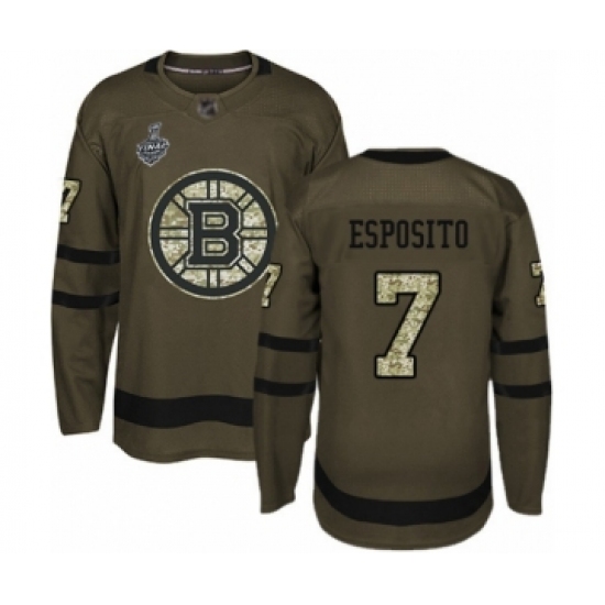 Youth Boston Bruins #7 Phil Esposito Authentic Green Salute to Service 2019 Stanley Cup Final Bound Hockey Jersey
