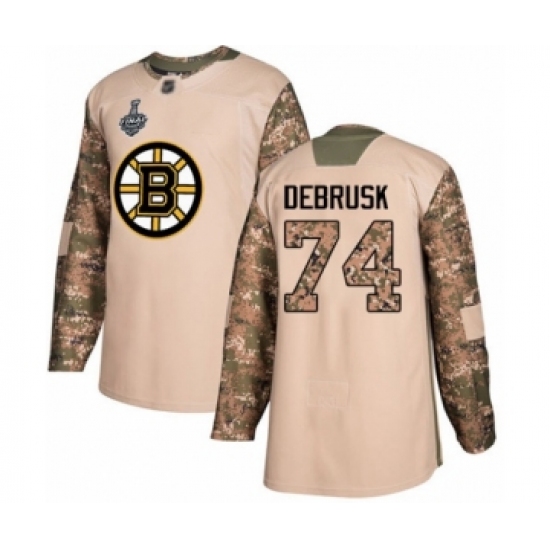 Youth Boston Bruins #74 Jake DeBrusk Authentic Camo Veterans Day Practice 2019 Stanley Cup Final Bound Hockey Jersey