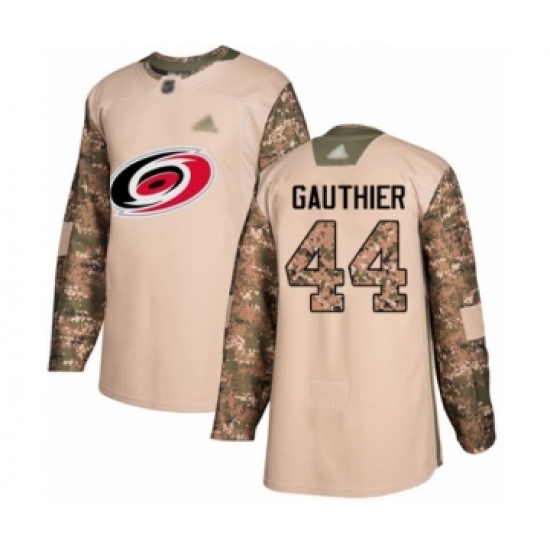 Women's Carolina Hurricanes #44 Julien Gauthier Authentic Camo Veterans Day Practice Hockey Jersey
